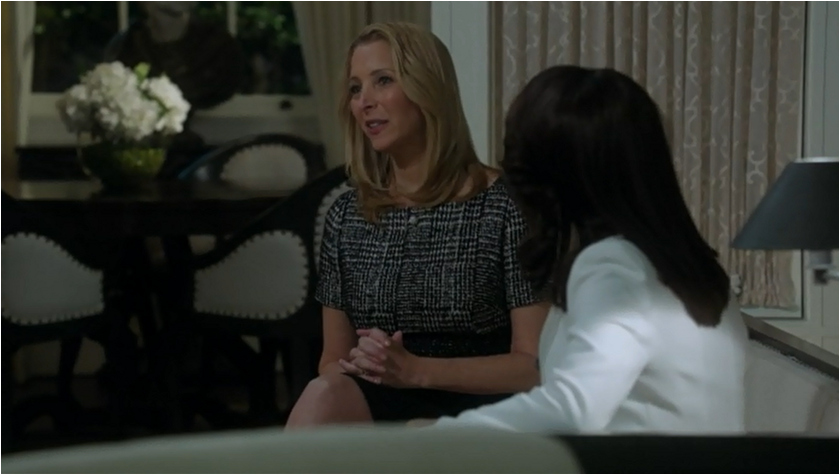Libby hasn’t told Bill that she is pregnant because she knows he will figure out what she has done. Instead she sees meaning in everything including the bird that killed itself by flying into her window. She sees it as a terrible omen and she doesn’t want to say the word pregnant out loud in case she jinxes the whole thing. This is rare Libby wearing pants moment and all of her clothes throughout this episode are devoid of any strong colors. Libby isn’t one for bright attire but there is something a lot more somber about these neutral items that she is wearing this week; it’s as if she doesn’t want to show anything off.