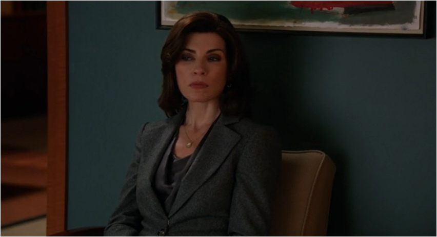 Whenever Virginia wears grey it makes me think of Dr. DePaul and while this neckline and style is not something Dr. DePaul would wear it’s also signifies serious work attire.