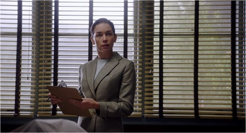 There is a severity to Dr. DePaul that is evident in the way she dresses and her costuming lacks any color, nor is it tailored to show off any kind of femininity. This reveals how little she wants to or can rely on her gender even though she specializes in female related medicine. Dr. DePaul is keeping her own secret and her research is a personal issues because she has Stage VI cancer; ultimately she has become her research in the same way that Bill and Virginia have become theirs – with very different outcomes of course. It makes the boredom that everyone is exhibiting at her presentation all the more painful and it shows why she has such a tight deadline for completing the work.