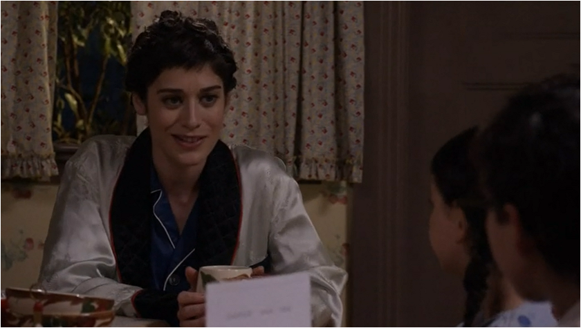Virginia sticks to the dark colors that we have seen her in throughout the series so far and aside from two different bathrobes (at home and at work) and her lab coat in class, it’s all greys and darker tones this week. Virginia is trying to be taken seriously by Dr. Lillian DePaul and Dr. DePaul is pretty hard on Virginia with her passive aggressive comments about her capability. Experience dictates reaction and Dr. DePaul has faced opposition to get where she is. This doesn’t mean that Virginia has had it easy, far from it but they’ve taken very different paths to get to this place. You could chime in with female solidarity, but for Dr. DePaul she has had to leave her gender at the door to get this far and she doesn’t want Virginia to have it easy either. It doesn’t help that Virginia asks for her work with Dr. Masters to count as partial credit as Dr. DePaul reads this as Virginia asking for an easy grade.