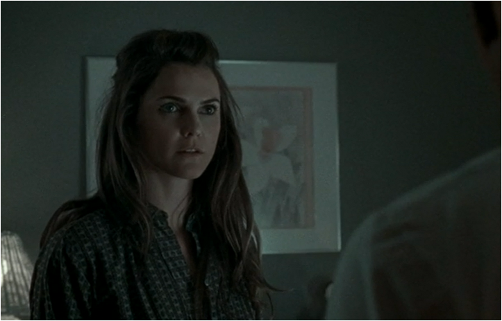 Philip’s changed out of the friendly sweater into serious dad shirt as he sits in the semi dark waiting for his daughter to get home. We’re so used to seeing Philip as the fun dad and so it’s quite the departure for him in this setting to turn on the stern disciplinarian tone. He’s pissed at Paige for a variety of reasons 1) she lied and “Lying will not be tolerated,” 2) she’s poking her nose into things that are dangerous and could blow their cover, 3) there’s an unknown danger out there and it’s hard to protect her when she’s deceiving them like this.