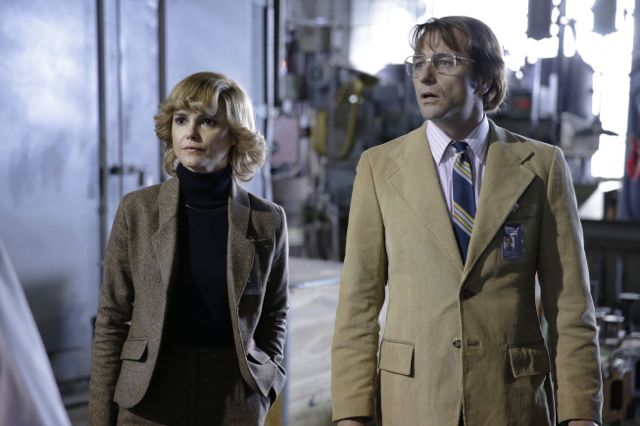 The trip to Newport News is a bit of a disaster as the thing they are after is no longer there and Elizabeth encounters a worker while she is snooping. Last season I don’t think Elizabeth would have hesitated in dropping him as she did with the security guard in episode 4 (“In Control”), now things are different and she uses intimidation as a weapon. Derek brings out photos of his children as a not so subtle way to plead for his life and this hits Elizabeth’s new family related nerve. It also provides her the leverage she needs as she takes a photo of one of his sons as a form of insurance. Disguise wise they’re both rocking the neutral beige tones, Philips got some big frames and a wig that resembles Clarke.