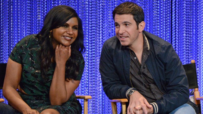 The Mindy Project is back next week after they left us on a kissing cliffhanger in January and here is a sneak peek of how adorable Chris Messina and Mindy Kaling look together. Kaling is wearing a beautiful emerald green jacquard Topshop high-waisted skirt and crop top; she explains in this month’s Vogue that “It’s really tempting to not take chances. But I don’t want to be fearful.” This sentiment sums up Kaling’s outfit decisions well and I love how she embraces fashion in this way even if it doesn’t always work. On this occasion it definitely does and this is great color on her.