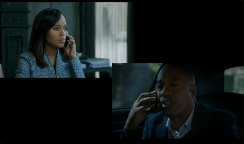 Family is a repeated theme this season as we have come to know both of Olivia’s parent (both shadowy and duplicitous with so much blood on their hands) and their beyond dysfunctional relationship with their daughter. No wonder Olivia likes to pound so much red wine. Rowan at first refuses to help with the B613 money trail investigation and for some reason they decided to 24 the editing, all that is missing is the ticking clock in the middle and two other shots showing what else is going on at this moment (I vote Mellie and Andrew in one box, Abby investigating something in the other).