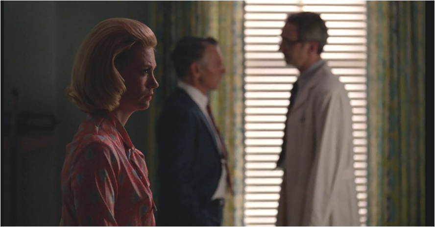 When Betty Draper visited a psychiatrist back in season one of Mad Men her doctor reported back to Don. When she gave birth in season three she was so out of it thanks to the cocktail of drugs her dreams were more vivid than the actual labor. Now in the penultimate episode Betty receives some devastating health related news and her doctor will only tell her what is wrong when her husband gets there. When Henry doesn’t trust this first diagnosis (he trusts it enough to snatch Betty’s cigarettes from her hands that once trembled long ago) and when they visit another doctor the men talk about her diagnosis and options as if she isn’t in the room.