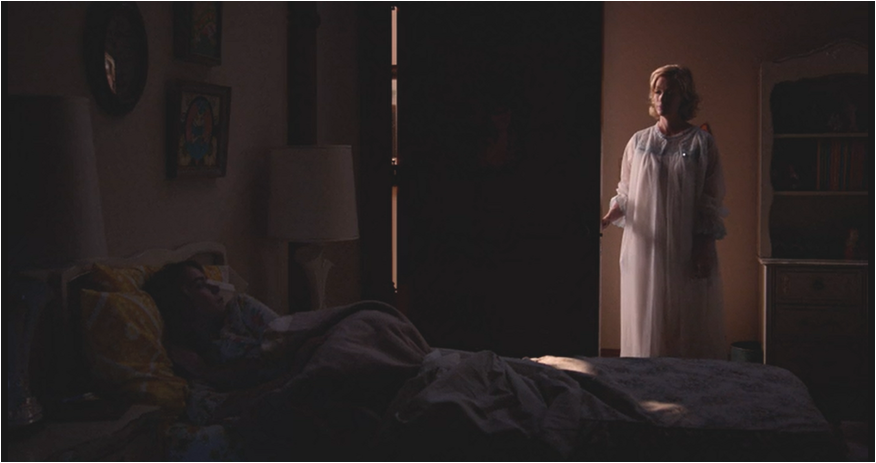 A late night conversation with Sally underlines why Betty is behaving like this and it is tied to how she watched her own mother die – Betty’s relationship with her mother and the pressure she was put under goes a long way to explain why Betty is the way she is – and the last thing Betty wants is to see her daughter to go through the same life altering experience. Of course this is going to impact Sally in ways Betty can’t control; there’s no easy fix for pain like this, but she can have some influence on how this ends. Sally gets one final moment of snark in telling her mother that she is refusing treatment because she loves the tragedy and while this is far from a warm and fuzzy conversation it is as close to mother/daughter bonding as we’re going to get. Betty has offered advice to Sally on makeup and boys in fleeting moments but here she is passing on real words of wisdom telling her that she has fought for plenty in her life and how it is not a weakness to know when to move on. In fact this could be considered the least selfish thing Betty has done. She already looks like a ghostly vision in this nightdress.