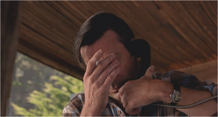 Instead of returning to his current home, Don instead moves further west and to the state he flees to in moments like this. When he mentions LA I figured we might see Megan, instead he goes to see Stephanie as a reminder of his Dick Whitman past (and funnily enough the last time I discussed the use of telephones was the last time we saw Stephanie as she painted a picture to Don that didn’t match her real circumstance). Through Stephanie, Don ends up at a hippy retreat in various seminars he clearly has nothing but disdain for. When he can’t escape (because Stephanie fled taking the car with her) he turns to an old friend making another important call home.
