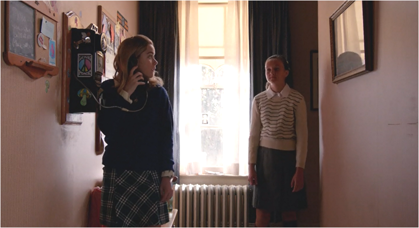At first Don thinks her mother is just being a hypochondriac, then he hears the full severity of the diagnosis and it hits him hard. Sally’s voice cracks when she initially tells him and then she moves into the protective big sister role (that we see again later when she returns home and Bobby Draper’s attempts at looking after his heartbreaking) getting her father to take what she is saying about the future of her brothers seriously. This is where Sally cuts off emotionally and it doesn’t help that there’s another girl skulking about waiting to use the phone. Nothing is private when you have a communal situation like this. She drops the bombshell and ends the conversation with “I can’t talk right now” which is a pretty devastating last scene between these two characters. Costume observation – Sally has worn the necklace her father got her in every scene since that Valentine’s episode showing their bond despite his persistent absence.