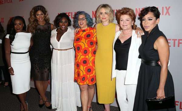 This Orange is the New Black group photo at a For Your Consideration screening and Q & A this week is delightful for several reasons including 1) Jenji Kohan’s dress, 2) so many good outfits/range of styles and 3) as a reminder that the new season is less than a month away.