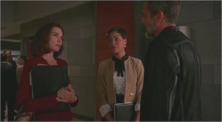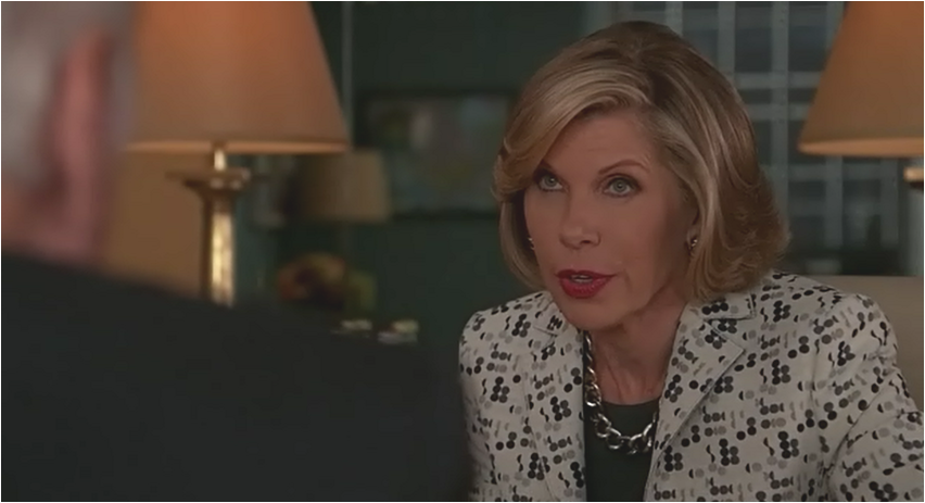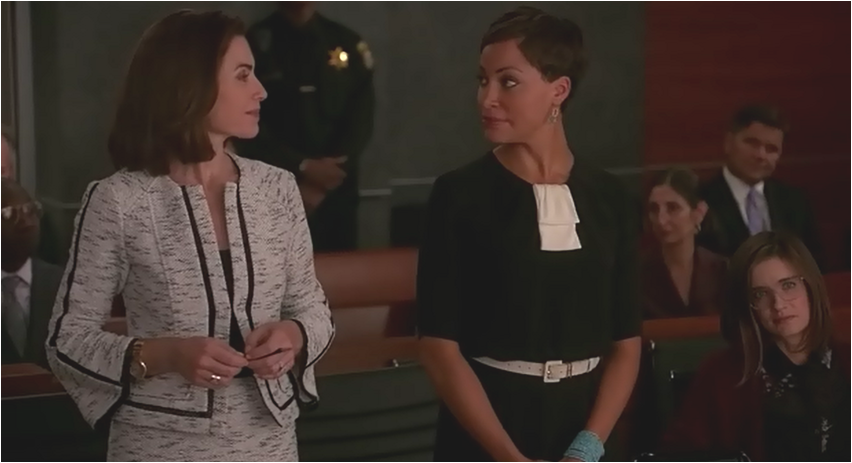 The look on Cary and Diane’s face when Alicia walks into the deposition is priceless; almost as spectacular as Diane’s colorful jacket and gold necklace combo.
