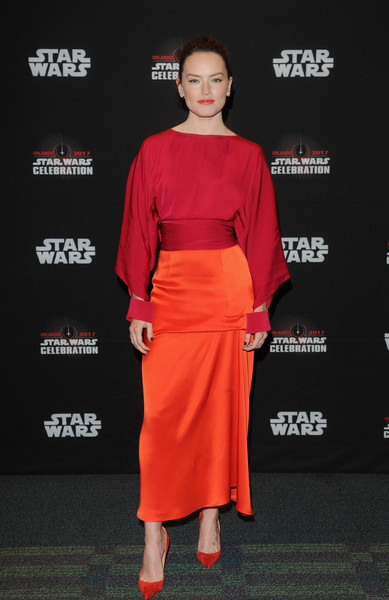 Daisy Ridley is no longer the newcomer and she’s still making daring fashion choices including this block color orange and red Stella McCartney number, which I’m sure shouldn’t work but does.