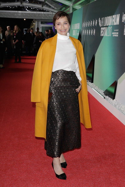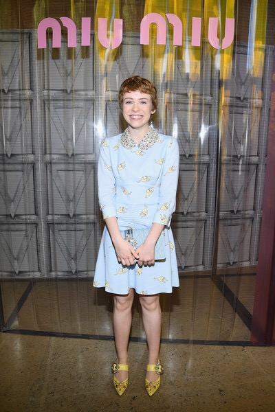 Jenna Coleman could step right into the 1960s scenes of Outlander in this head-to-toe Burberry ensemble at the BAFTA Breakthrough Brits reception. It is also part Audrey Horne school uniform chic with a dash of ’90s with those red laced boots.
