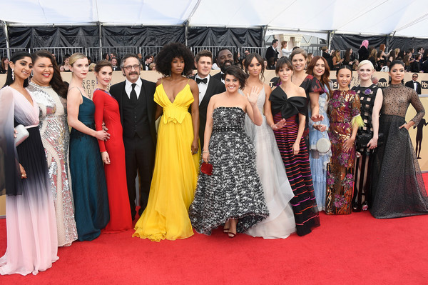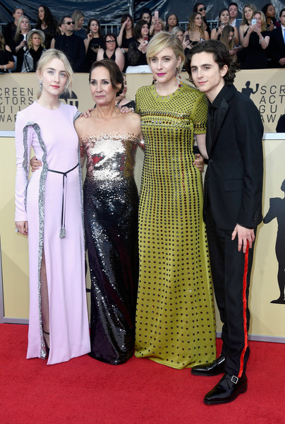 And a dash of ladysuit fabulousness from Aubrey Plaza in pink Rebecca Minkoff at “An Evening with Beverly Luff Lin.” A #TimesUp red beanie to promote the movement and because keeping your head warm is important (my mother drilled this into me, which might also be why I am a hat person).