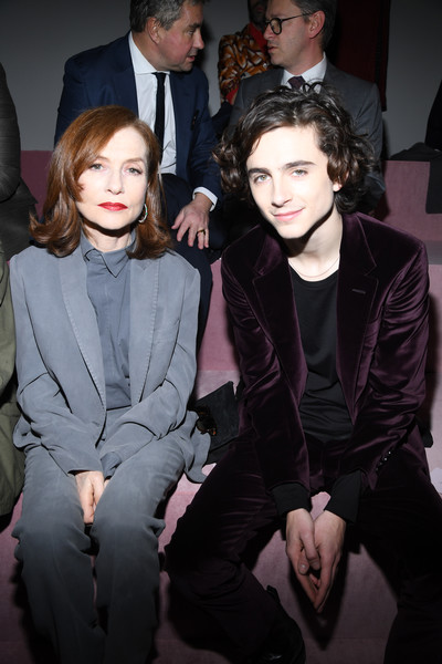 From Utah to Paris; at the Berluti Menswear F/W 2018 show Isabelle Huppert continues to exude everything cool and Timothée Chalmet dips his toe back in the velvet suit well.