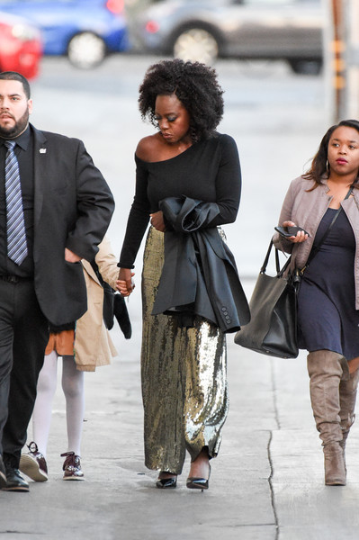 Sequins are everywhere at the moment and I am very much on board with this trend. At Jimmy Kimmel Live! Viola Davis leans into this with a pair of gold sequined pants; everything about this look is fantastic.