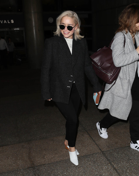 An early contender for best airport style. The only thing I would change about Emilia Clarke’s outfit is those shoes. Switch them out for the Adidas sneakers would really make this look. Coveting this blazer hard.