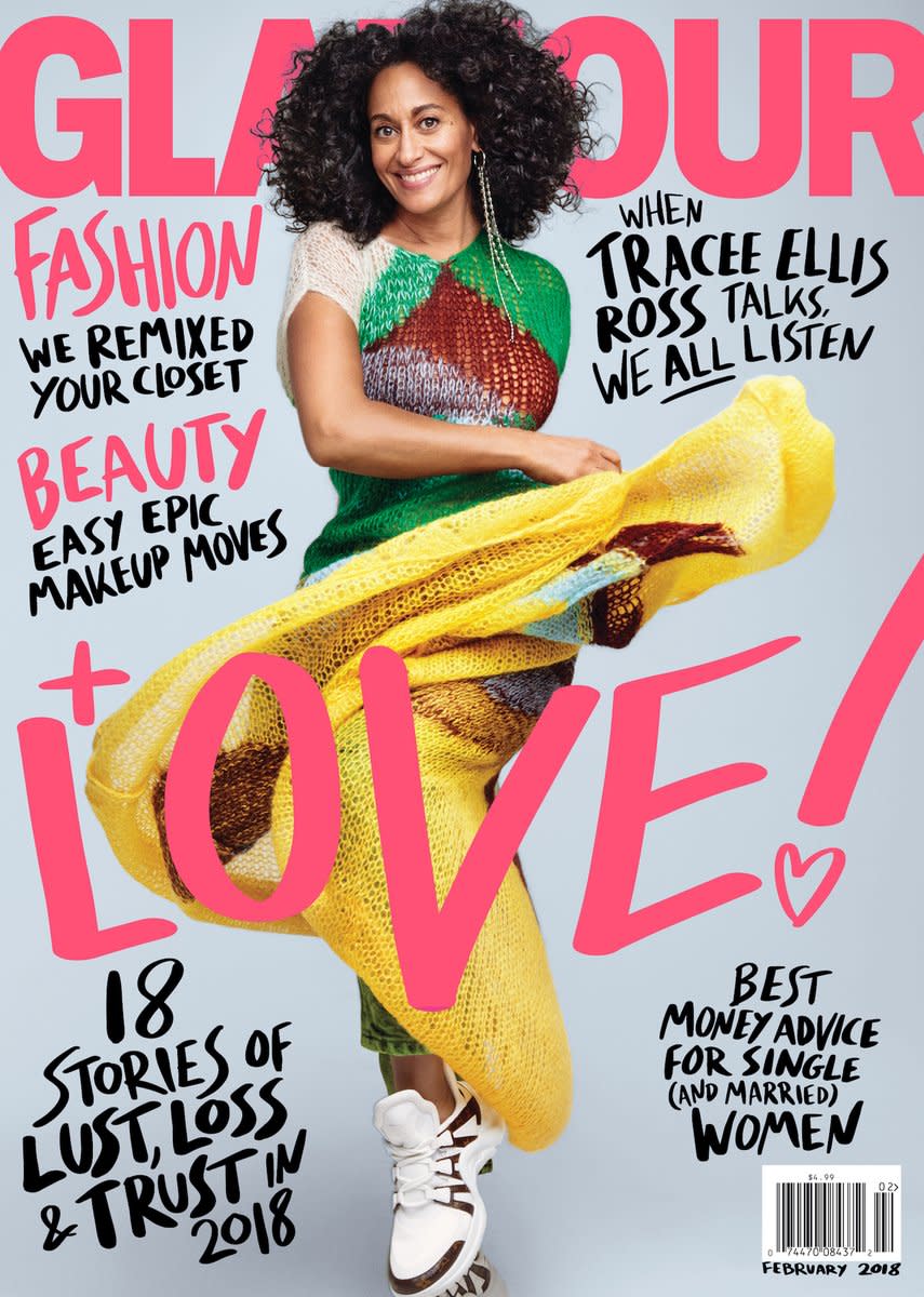 Glamour needs to stop with this coverline design. It is too much and not in a good way. What they don’t need to stop with is cover images like this one and I love everything about this shot of Tracee Ellis Ross.