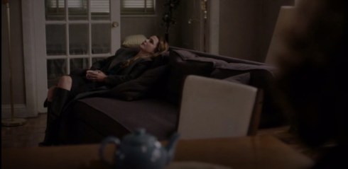 Cut to a now familiar setting the next day; Elizabeth smoking outside with Philip coming out to see him. But there is a lightness, a spring is his step* as he notes that he hasn’t slept that well in ages with Elizabeth joking “I wonder why.” She still hasn’t slept well, the reason probably has something to do with what follows in the kitchen, as she asks him to go to Greece because without the Kimmy tapes she’s screwed. Sex again comes into focus as a manipulation tool; was Elizabeth just doing this so Philip would bend to her will.