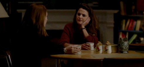 Claudia and Elizabeth give Paige a lesson in how to drink more; have a shot of olive oil before you start. Holly Taylor does not recommend this. Also I now very much want to get drunk with Claudia (and Margo Martindale).