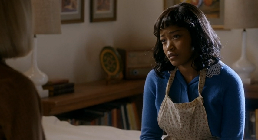 Masters of Sex 2.05 CoralMoving on from an interaction that is tear inducing to one that causes another emotional reaction – of the “Shut up, Libby!” variety – and Libby continues down the path of self-righteous destruction. Libby’s relationship with Coral reaches new lows of patronizing after she receives a visit from Coral’s boyfriend Robert regarding the degrading shampoo incident. Libby can’t understand that what she did was completely inappropriate until Bill points out just how horrific these actions were. Libby is being painted in a very unfortunate light and her attempts to do the ‘right thing’ like impart life lessons as she “knows a thing or two about the world” lead to further humiliation and anger. With Coral when she tells her to dump Robert, Coral uses her knowledge of the separate beds in the Masters’ bedroom to poke at Libby’s insecurities (and it prompts Libby’s ‘seduction’ of Bill later on) and Robert points out how she should be apologizing to Coral not him. Libby is shocked that Robert is calling her racist and while we saw some liberal attitudes from Libby last season there is still inherent snobbery that translates at racism with how she is treating Coral and Bill’s new workplace location.