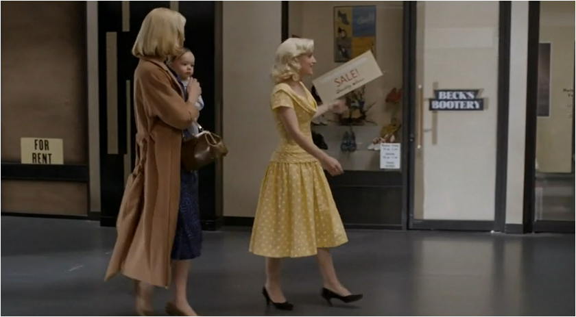 We open with a title card telling us it is 5 months after the events of last week (which I noted felt like the end of a chapter) and in total the episode covers 3 years of time starting in October 1958. Lester’s clapperboards are a significant tool in noting these dates and are a more organic form than the title card that is used only at the start of the episode. Betty is another source of addressing the time shift and presenting it to the audience in an arresting manner.