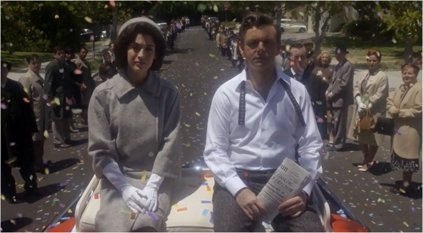 Masters of Sex 2.12 John and JackieAnother cornerstone of a successful relationship is communication and this is something Virginia and Bill possess in droves, except when they don’t. Communication is key to overcoming Bill’s boner problem tying in with the Kennedy election victory and in Bill’s dream he gets to play the role of JFK with a ticker tape parade and Virginia in Jackie Kennedy attire. The celebration is cut short by Libby standing in the middle of the road as the wronged woman dressed all in red.