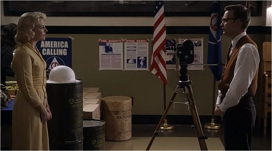 As with Mad MenMasters of Sex has barely touched upon the political climate of the time period unless it directly impacts the characters. In “Fallout” there is no escaping it as a huge Civil Defense simulation is taking place across Missouri with their hospital being one of the practice staging areas. [We’ve now entered 1960 and these events occur a few weeks after the last episode, from what I can gather it is this exercise they are depicting – choice quote from that newspaper article “To many housewives it meant they had to miss part of their noontime television and radio broadcasts.”]*