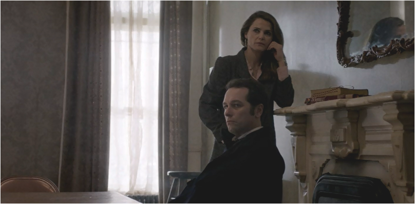 It also is not a coincidence that the establishing shots of the FBI and KGB buildings show just how similar each looks in all its concrete glory. Chris Long directs once again and he also gives the Jennings house exterior the same horror feeling as he did in the season 4 finale and last week’s premiere only this time it is daylight as the camera pushes in.