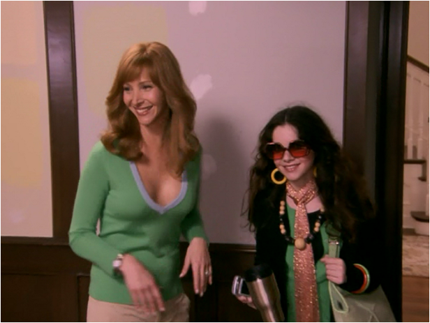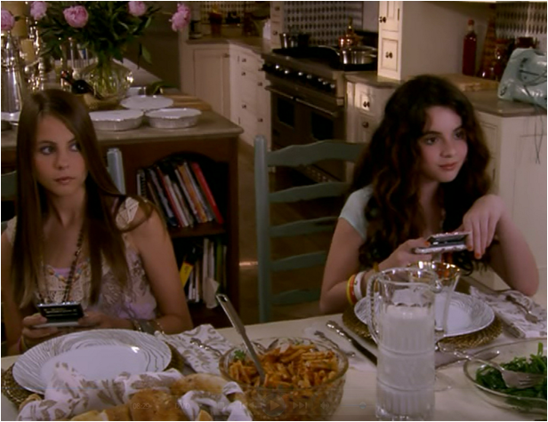 Moving on to the next episode; there are two main threads here with Valerie’s relationship with her stepdaughter and the major shakeup with Room & Bored. As we’re talking about Valerie and Mark I’m going to start with Francesca. The few times we have seen Francesca it’s clear that her new found interest in Valerie is because of the cameras and we get to meet Francesca’s equally fame hungry current BFF Kalla (played by a very young looking pre OC Willa Holland). Both girls have a new obsession with Juna and her new album so Valerie becomes even more likable to them thanks to her access to Juna. This doesn’t stop them from talking shit to Valerie, smoking – it’s ok they’re American Spirit – and being infinitely embarrassed because their teenagers. We also get to see some more Sidekick action as the girls communicate with each other via their phones even when they’re sitting next to each other. Once again Atkins gets a mentioning reminding us this is very much 2005.