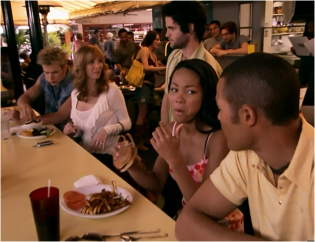 I can’t really read Juna yet. That whole cast lunch was kinda cringey–and while I liked Valerie’s gifts to the cast–that was pretty awkward as well. But the Valerie waiting and waiting at lunch for Juna was awful to watch. And I agree that’s how I’d probably look if I was filmed in a situation like that–although I’d probably look a lot more pissed and be sending texts on my phone to friends such as “I fucking hate everyone.” But I have a couple theories about Juna–I think she could just be this flighty LA type who just doesn’t realize that she’s being terrible/thinks that being 40 minutes late is being on time. While we do learn that it’s her first acting role, she’s in a band–and she totally strikes me as being known for that/socialite/party girl situation. But I can’t decide if she really is that oblivious or not. I do want her and Valerie to be friends though.
