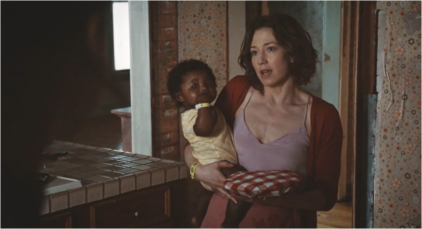 Between the waves and the injection of red and pink tones into her costuming Nora’s look has been softened and moves away from her business wear styling from season 1. She is embracing motherhood and there is added femininity to her attire. Especially when she is holding both Lily and a freshly baked pie.