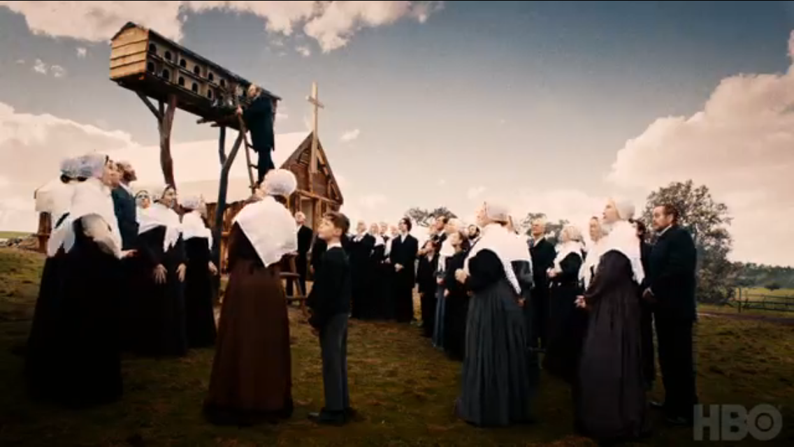 For the Guilty Remnant the white uniform is their way of shedding any kind of connection to their past and any form of personal identity. Nora’s costuming/hair evolution points back to the past as well as welcoming her present; it is why she is so desperate to get away from the town that took her first family to a place where there were no departures. Red is a powerful color and adds weight to the idea that Nora is the heart of this family unit while also showing the gulf which grows as a result of Kevin’s big dark secret.
