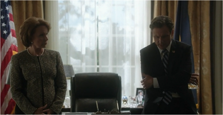 A well put together lady suit and a bathroom revelation with Bill putting the unzipped skirt and Virginia’s throwing up together to equal pregnant. After all the talk of making sure her daughter doesn’t end up pregnant it is Virginia who ends up in the family way. Super awkward and a story development that I’m not sure how I feel about.