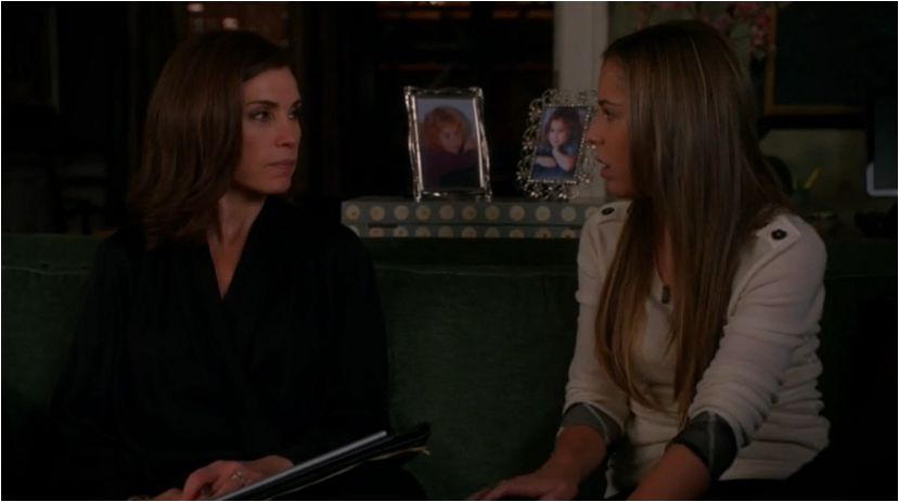 Retro sports apparel is always my fave. This is no exception. It is also worth noting that Erica is having a major influence on Elizabeth. Instead of smoking, Elizabeth sketches in this moment of high stress.