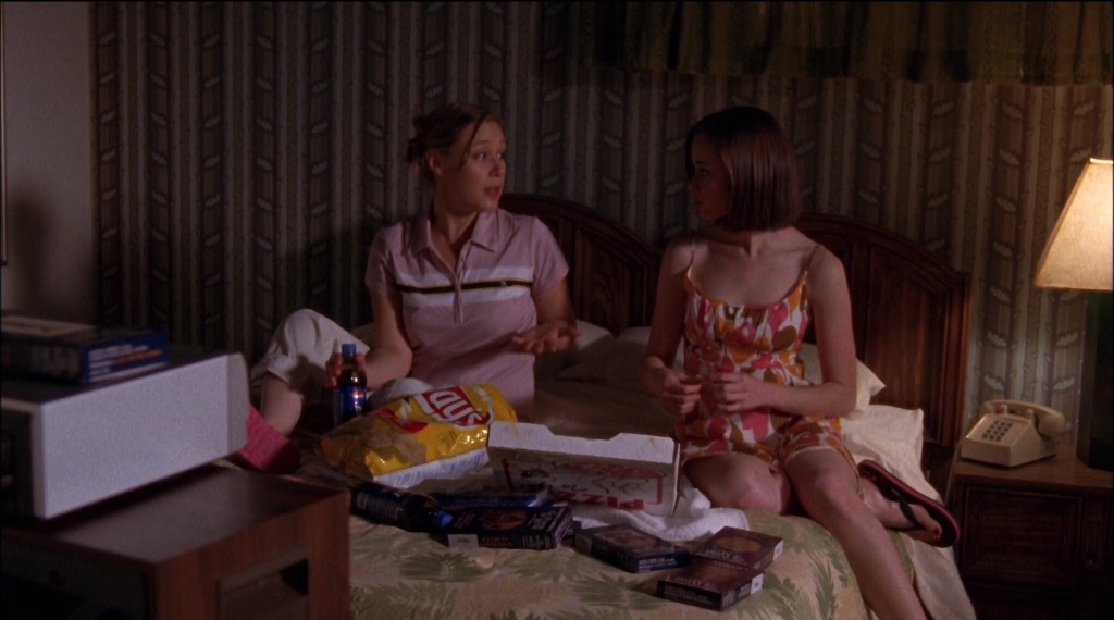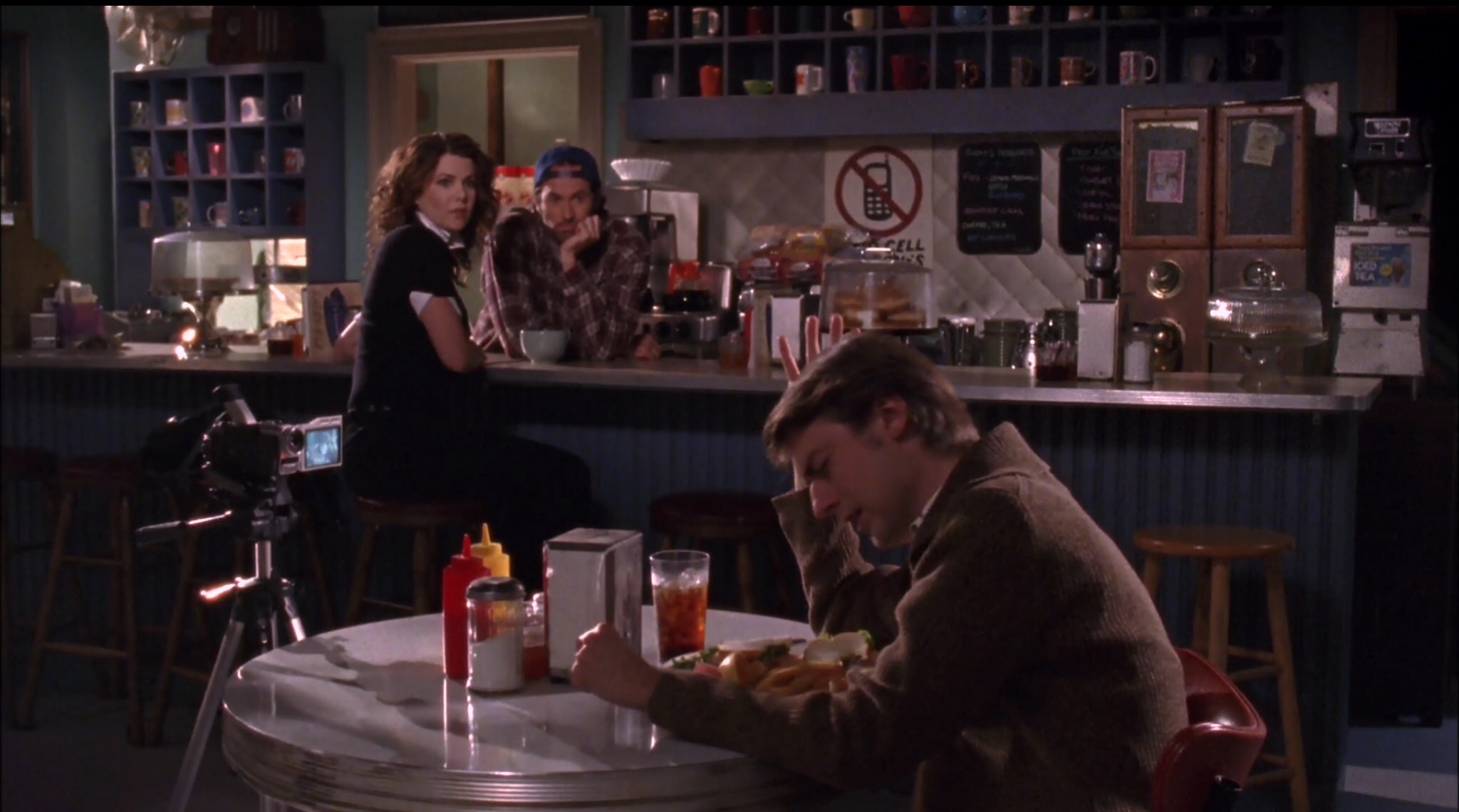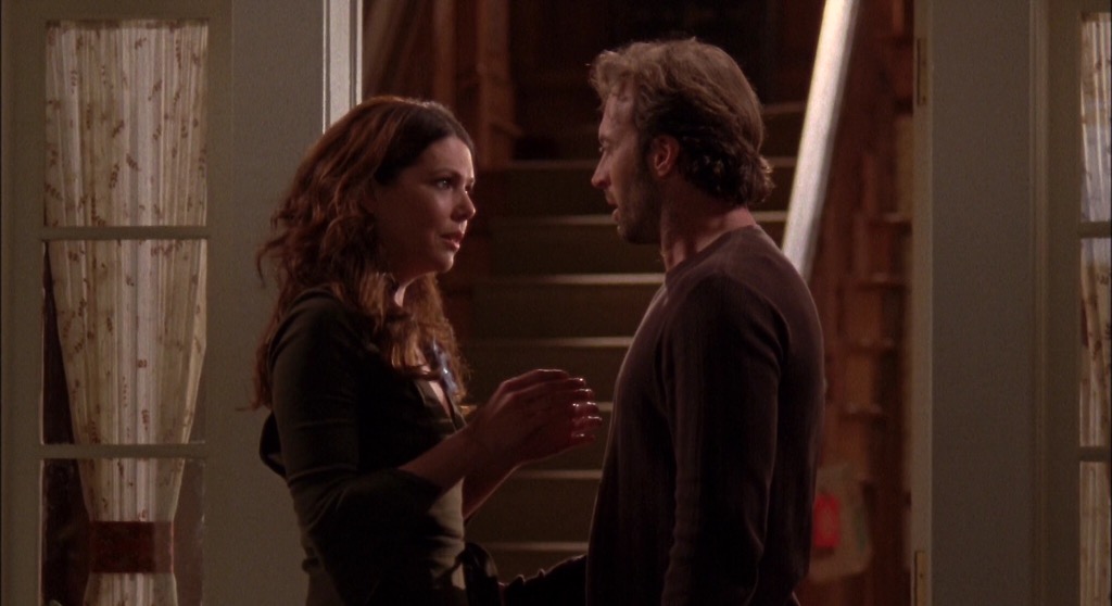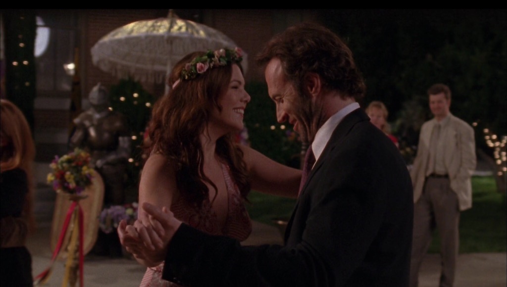 Julie: Yeah, teenage sex hasn’t really been an issue on the show to this point, even though Rory has had two boyfriends (one very long term). Her thing with Dean always seemed kind of chaste. The two of them didn’t seem to have much romantic chemistry. They hardly ever seemed to be alone together, and the few times they were alone either ended in fighting or with them surrounded by other people.