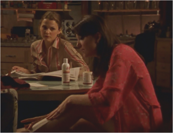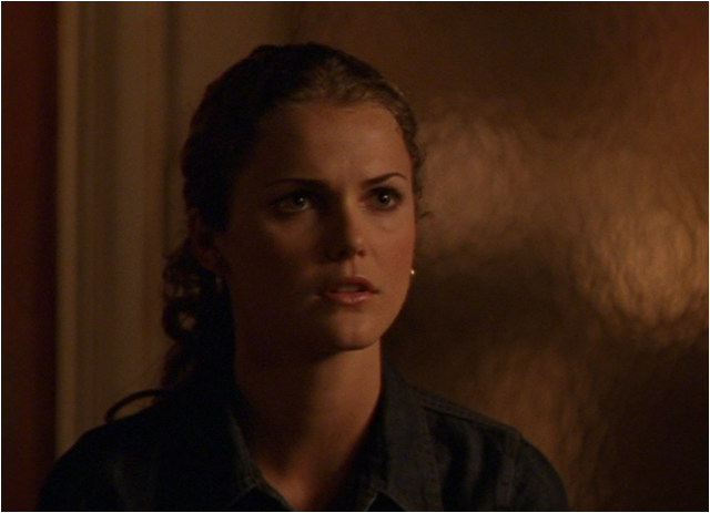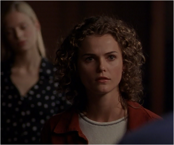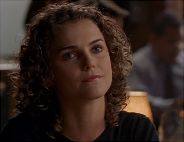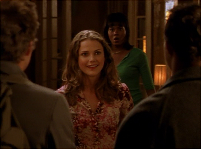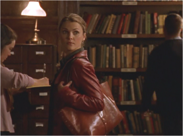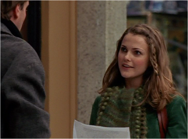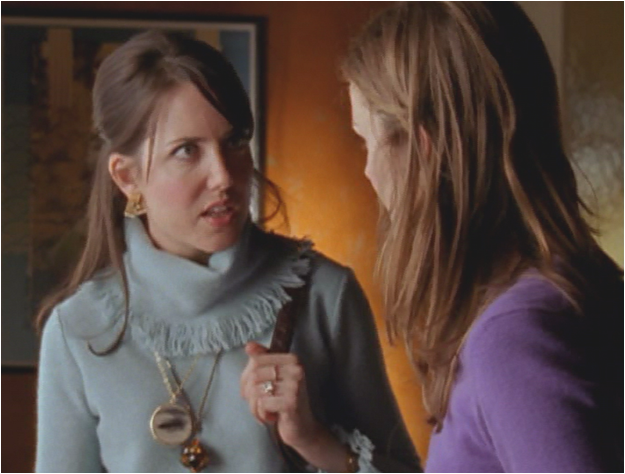 One quick aughts fashion report and this year was not kind including Meghan’s sweater that is part turtleneck/part throw and Felicity’s very pleather looking oxblood jacket. Felicity’s purple paisley shirt is very cute and so this can stay. How did the start of this decade get it so wrong with style?