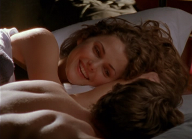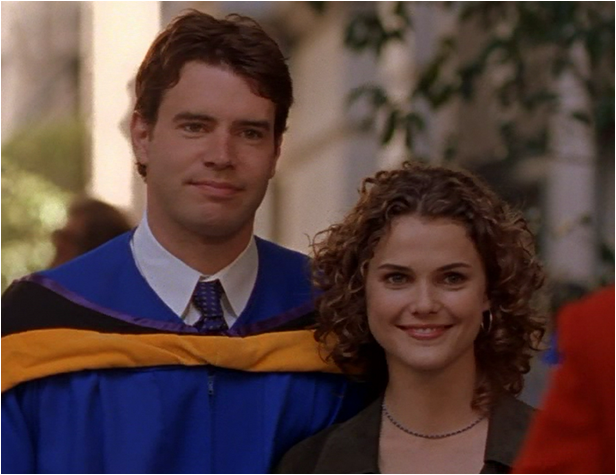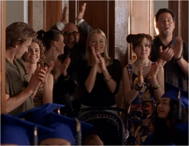 One thing I really liked about Meghan and Felicity is how far they have come and that it is Meghan who is worried that they won’t be friends when college is over. Slightly vulnerable Meghan is always a delight to see and Felicity’s ‘of course’ reaction followed by laughter is a moment of levity that was very much appreciated. And really out of all the friendships this one does seem like it will stick. And it is one that has done so in real life too, which you know makes me rather happy. I’m still giddy that Sharon was Angela Chase’s bridesmaid IRL. Such a sucker for this.