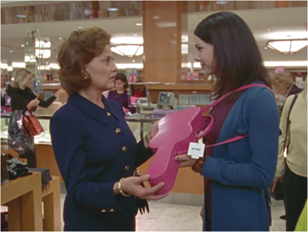 Emma: I am glad however, that Emily did not go for the guitar purse. That would have been true sabotage from Lorelai.