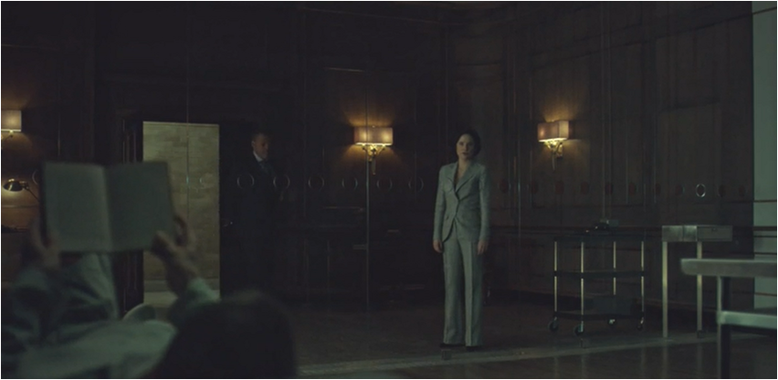 When watching the Chilton video she is a picture of teary eyed guilt. Costuming sidenote – this is another excellent lady suit week for Dr Alana Bloom with the Hannibal- esque plaid and pinstripes. Both of which are more toned down versions of some the ensembles she has been wearing this season and it is interesting that she has ditched the red attire except for her crimson lipstick.