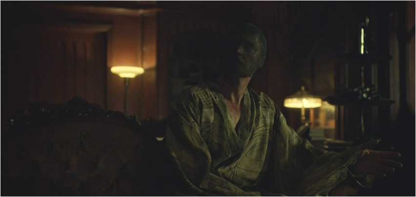 Curiosity killed the cat or in the case of Will Graham curiosity results in events that are in part expected and are also highly unfortunate for one Dr Fredrick Chilton. Chilton has become something of a Kenny like figure and unlike his South Park counterpart he just can’t be killed. But he can definitely be maimed and now to go along with his missing organs and already messed up face, he is now missing his lips and covered in burns. That is going to take a lot of makeup and skin grafts to cover up. The fate of Chilton and who is to blame for this new trauma is spread across many players from the man who actually did this to him to those who conspired in this plan. The only certain thing is Hannibal’s correct ‘we don’t get to chose our own endings’ assertion.