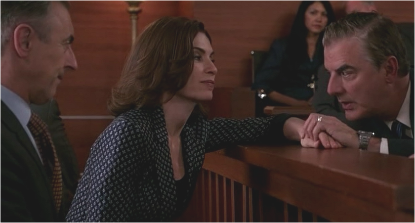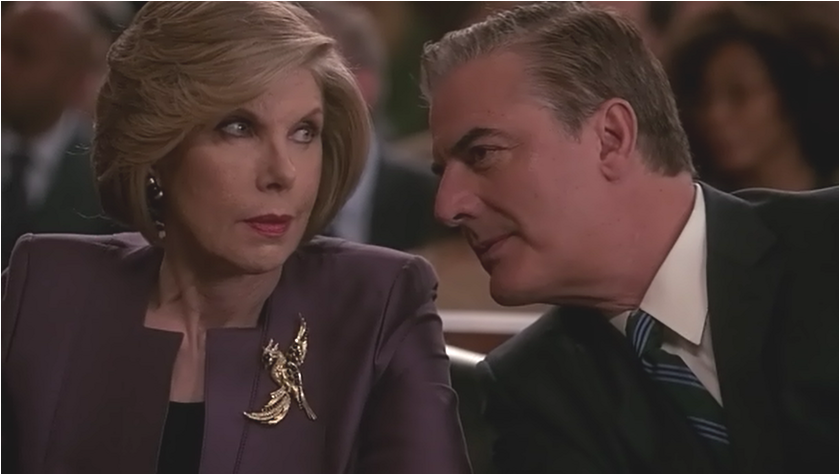 It isn’t just that they have the best and longest guest star list on any TV show at the moment (maybe ever) or that their ability to rip from the headlines is incredibly strong (okay there was that one blip), but that they can weave the two together so seamlessly. The world the Kings have created is so rich and layered, which makes watching it such a pleasure.* Especially when the plot moves forward like this.