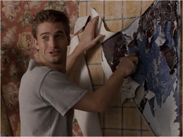 The painting party was ridiculous. As Noel points out, he and Elena are moving out of there in a few months anyway, so why spend all the time (and money, poor college students) to fix up a place you’re leaving and have no monetary stake in. Also, the husband and I ripped down rooms and rooms full of wallpaper when we moved into our house, and I get the shakes just watching these scenes. Wallpaper removal is not for the faint of heart, or for pre-med students who could find better use for their time.