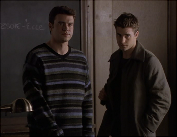 Greg is just a stopgap. The show is winding down to the season finale, and there’s no way he sticks around for junior year (unless Meghan gets her mitts on him). Actually, that’s the storyline I’d like to see, Meghan getting all peeved that Felicity goes after Greg only to cast him aside like it’s no big deal. That would probably almost be a worse crime as far as Meghan’s concerned. I think she’d be a little bit cool with Felicity edging her out for Greg’s affections, but I don’t think she’d be all right with losing Greg to Felicity only to have her lose interest almost immediately. And I’m pretty sure there’d be spells involved. It’s the end of the year. There has to be a spell at some point.