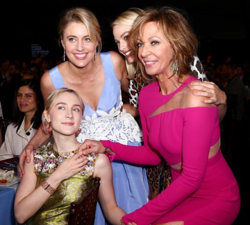 My favorite all-time Oscar look is Michelle Williams in mustard yellow Vera Wang. It is not surprising to discover that Greta Gerwig in custom floral Rodarte in this particular shade is an instant win. I love everything about this, right down to her lipstick color.
