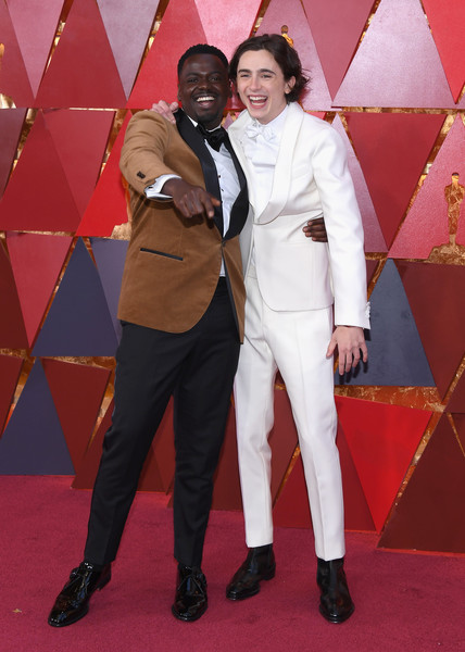 Sadly neither Daniel Kaluuya nor Timothée Chalamet won Best Actor, but they did seem to be having a good time on the red carpet. Kaluuya mixed things up in brown Brunello Cucinelli and Timothée Chalamet went the nearly all-white approach in Berluti.