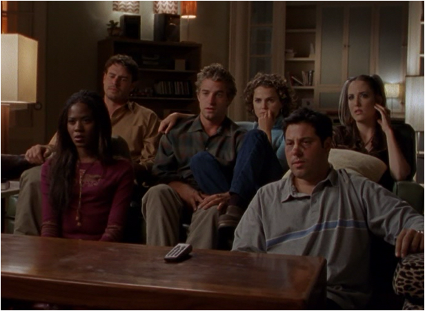 Julie: Oh, and yeah! This aired in October of 2001 and no mention of 9/11 at this point. Maybe these episodes were already in the can. Maybe they live in an alternate New York universe where none of that happened. Maybe we’ll need to discuss this next time.