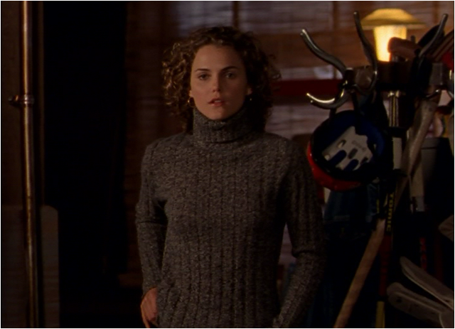 It is quite hard to figure out exactly where Dr Pavone is coming from and in a way she is just a stand in as Felicity’s get a grip friend as everyone else who she is close to is also friends with both Ben and Noel. Plus Elena is busy planning a wedding and after she compliments Felicity on her attitude towards love it makes it impossible for Felicity to tell her what’s going on and that it was actually Noel who gave her that love bite. And seriously Noel, I know it was the heat of the moment but this is far from subtle and also you’re in your 20s, hickeys should be done by now Good job Felicity has every turtleneck ever – see below – but in this heat they are far from practical. Even that sleeveless one is causing problems in the heat. Ben is oblivious to Felicity’s sudden summer knitwear obsession and to him Felicity’s breakup is all down to feeling confused. There’s that word again and it is normally Ben citing confusion to mask the truth.