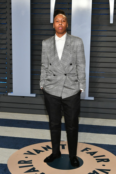 Lena Waithe has a strong jacket game, as witnessed at the Emmys last year. This double-breasted Ralph Lauren Purple Label check and white bow tie combo is just as fabulous.