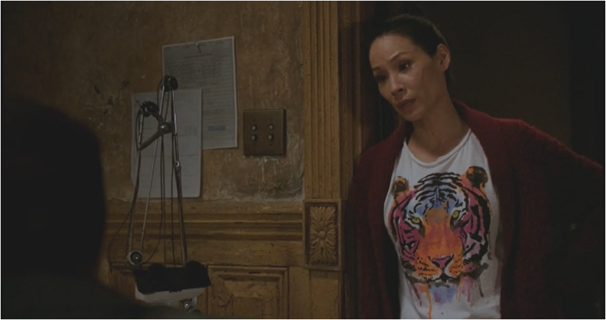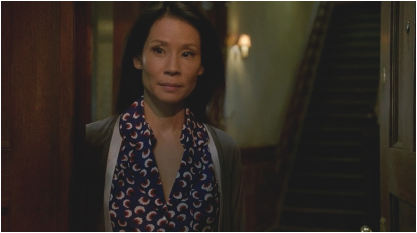 Every episode of Elementary is a costuming dream and Joan’s fashion palette is full of patterned delights including this stunning Victoria Beckham shirt dress; it looks like a shot of springtime against the snowy backdrop. There are several shows which use the winter shooting schedule to their advantage and Elementary is on this list (The Americans and Hannibal are two others).