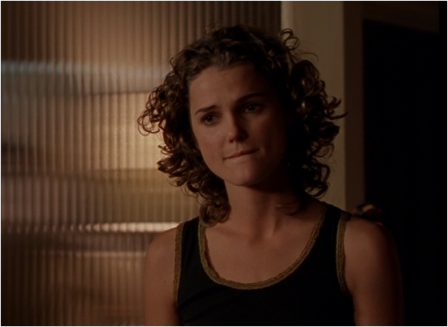 Emma: In my notes for the self-defense class scenes other than hating on the halter I did ask for some Americans like moves from Keri Russell and they pretty much gave me some (she really does kick some serious ass on that show). The reason Felicity is at the class is because Elena has been regaining her sense of empowerment through learning how to protect herself. Elena has been showing off her new skills on Felicity and when it is Felicity’s turn to return the favor Elena is having none of it as her heart has been stomped all over.